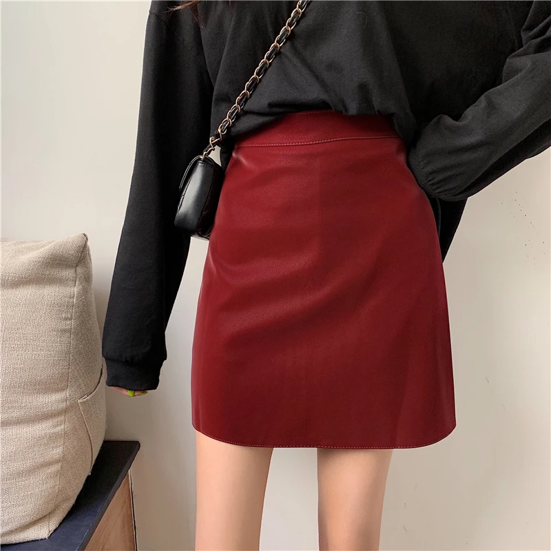 Юбка женская из искусственной кожи, однотонная, трапециевидная, с высокой талией, весна