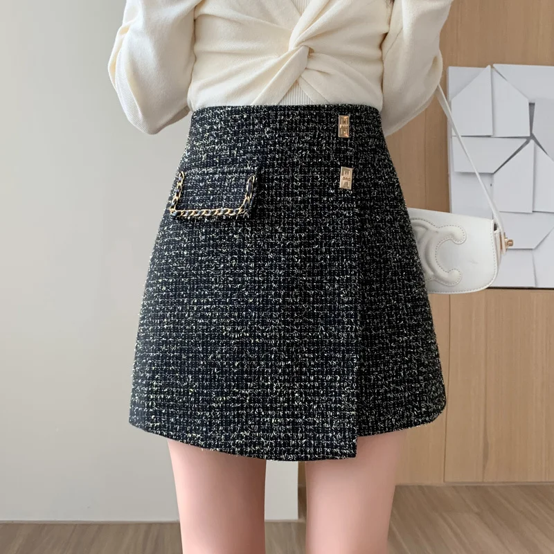 Юбка женская твидовая шерстяная с карманами и высокой талией, на осень/зиму