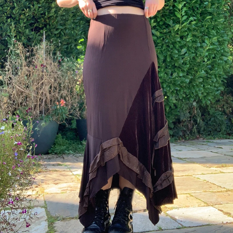 Юбка женская трапециевидная составного кроя с оборками и высокой талией