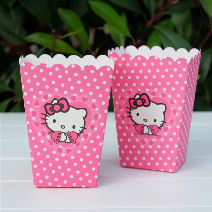 6pcs/lot Hello Kitty Cat Cartoon Popcorn Box case Gift Box Favor Accessory kids Birthday Party Supplies