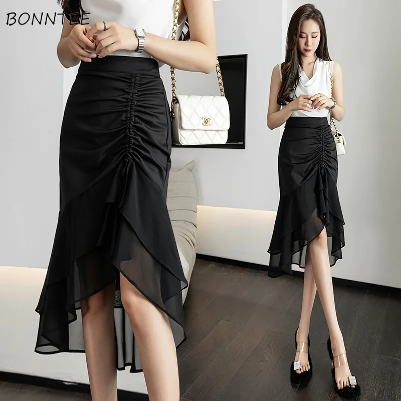 Юбка женская шифоновая средней длины, элегантная простая модная миди-юбка в Корейском стиле, с завышенной талией, нежная дизайнерская в обтяжку, Y2k