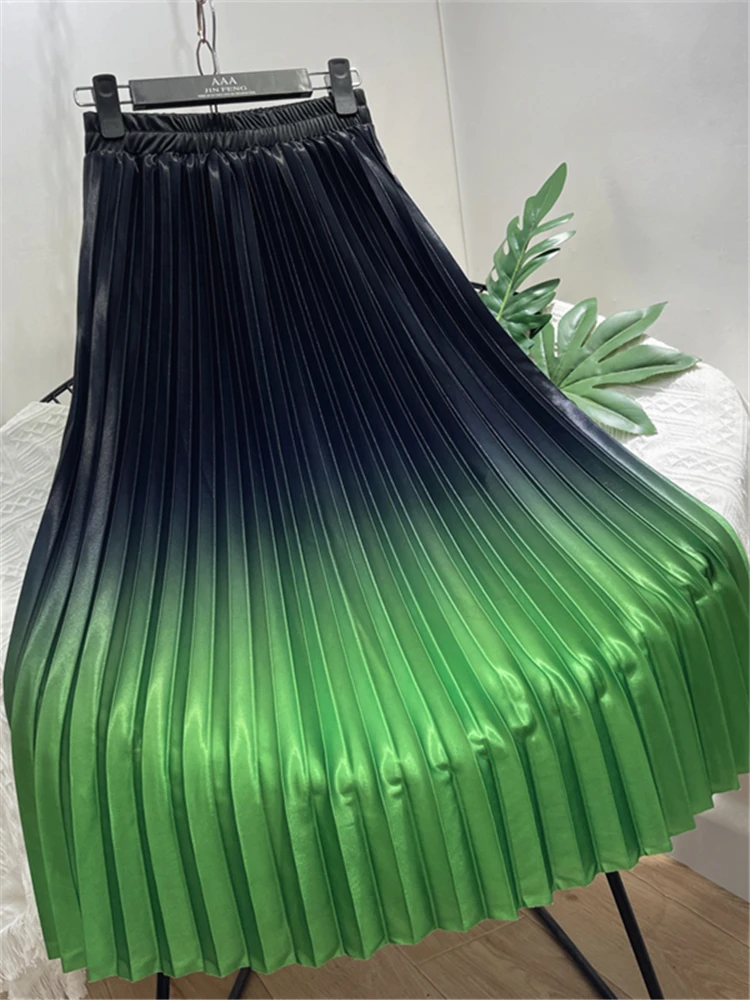 Юбка-зонт Женская Плиссированная, однотонная Повседневная винтажная граненая юбка до середины икры, с завышенной талией, весна-лето