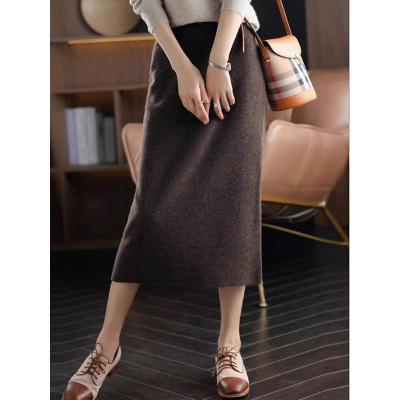 Юбка из шерстяного трикотажа с эффектом потертости для женщин, новая осенне-зимняя юбка А-силуэта с высокой талией, очень красивая M