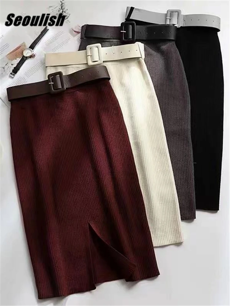 Юбка-карандаш Женская трикотажная средней длины с поясом и высокой талией