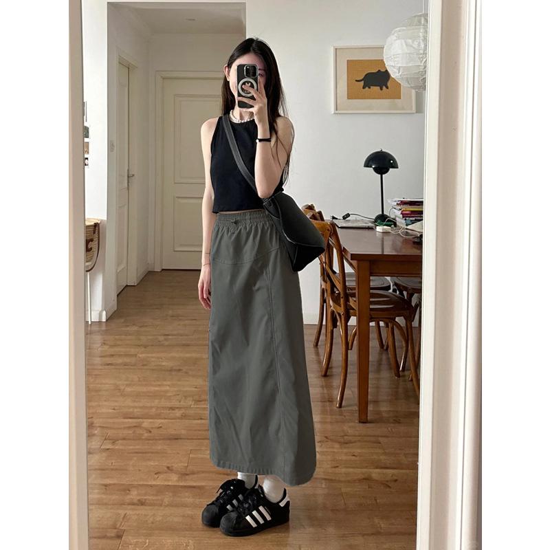 Юбка миди А-силуэта с высокой талией большого размера - Летняя универсальная женская облегающая модель L