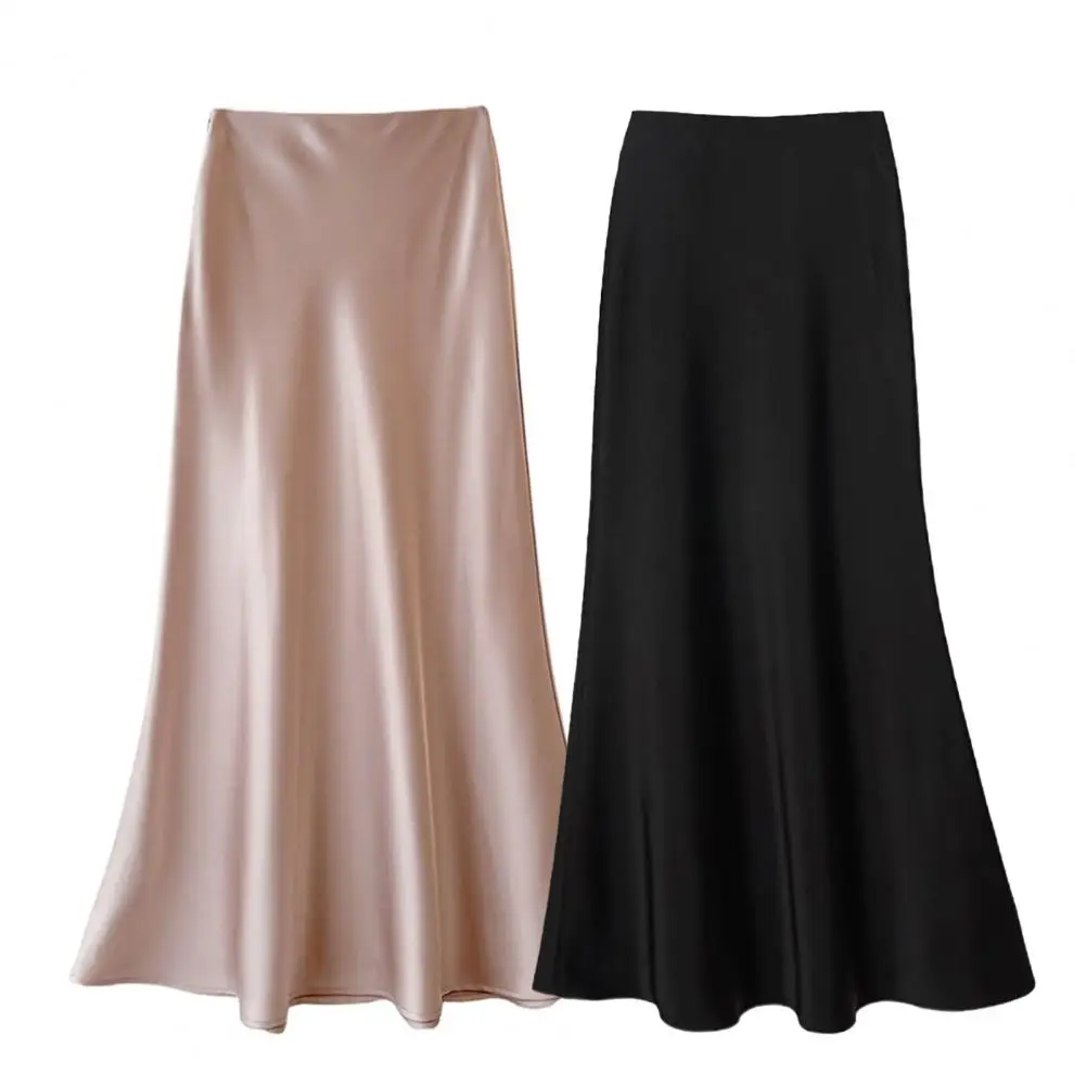 Юбка-миди Женская атласная трапециевидная с завышенной талией и подолом