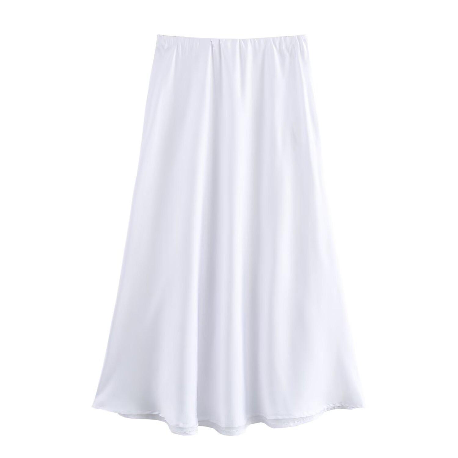 Юбка миди из французского шелкового сатина в европейском и американском стиле: Высококачественная ретро-драпировка для лета и осени Large