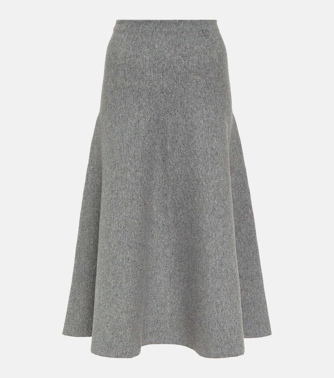 Юбка миди с высокой посадкой из смесовой шерсти Valentino, серый