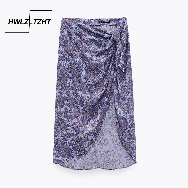 Юбка-миди HWLZLTZHT женская с высокой талией, элегантная длинная юбка с принтом, с оборками, с разрезом, в Корейском стиле, лето 2021