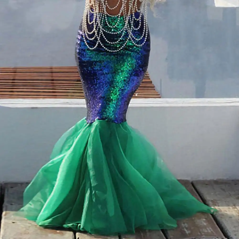 Юбка на Хэллоуин, блестящая Лоскутная мультяшная фигурка, облегающий костюм для ролевых игр с большим подолом, прозрачный сетчатый костюм д...