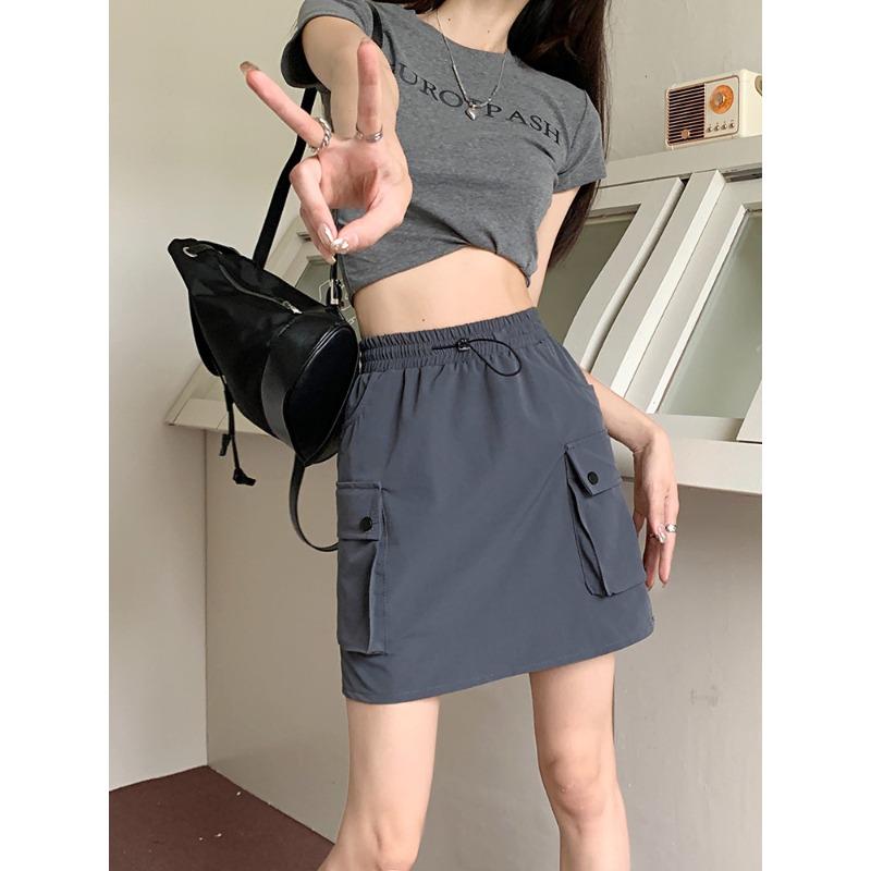 Юбка на шнурке, женская летняя повседневная короткая юбка, узкая серая юбка с эластичной резинкой на талии, рабочая юбка А-силуэта XXL