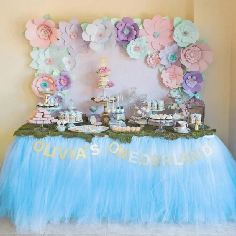 Юбка-пачка для стола Украшение на День святого Валентина Свадьба Пышная Посуда для вечеринки по случаю рождения ребенка Домашний декор для вечеринки Ручная работа скатерть для праздничного стола синий