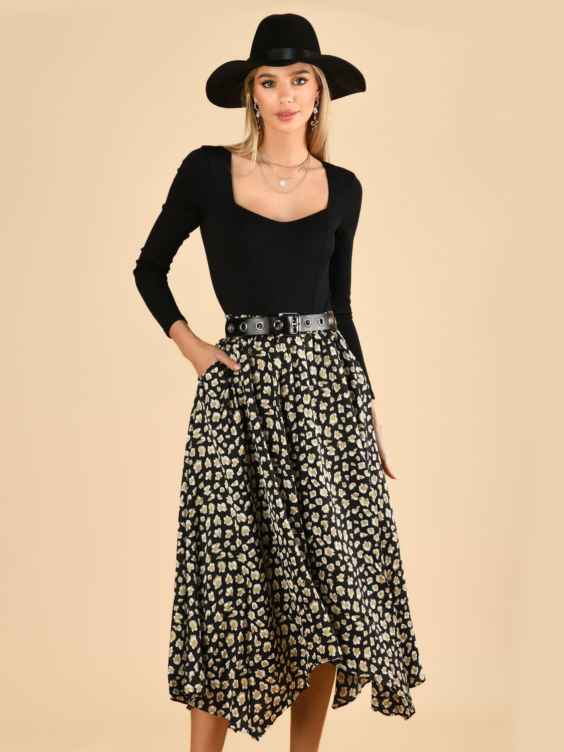 Юбка-платформа с анималистическим принтом Jolie Moi, Черный с изображением животных