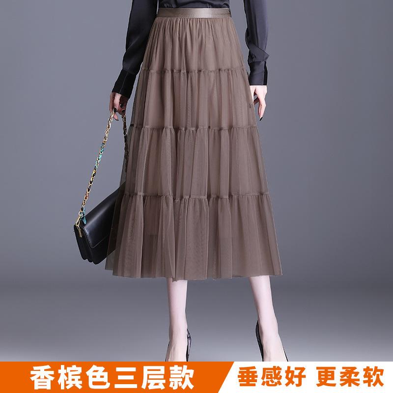 Юбка-полудлинная женская летняя сетчатая юбка юбка-зонтик плиссированная длинная юбка драпированная юбка-слово весна женская маленькая весна и осень пожилая One Size шампанского