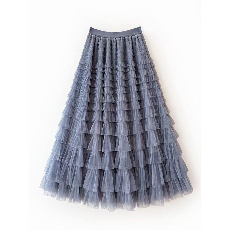 Юбка-торт Юбка-бюстье из сетки Женская юбка-бюстье на весну и осень Юбка из многослойного газа Длинная юбка с высокой талией Пышная юбка Плиссированная длинная юбка 95cm серый