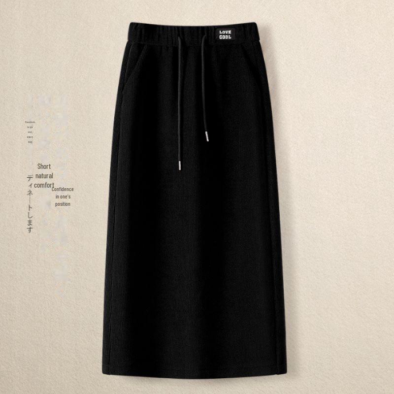 Юбка трапециевидной формы из вельвета с высокой талией 2024 года — повседневная, облегающая, средней длины, на осень/зиму XL чёрный