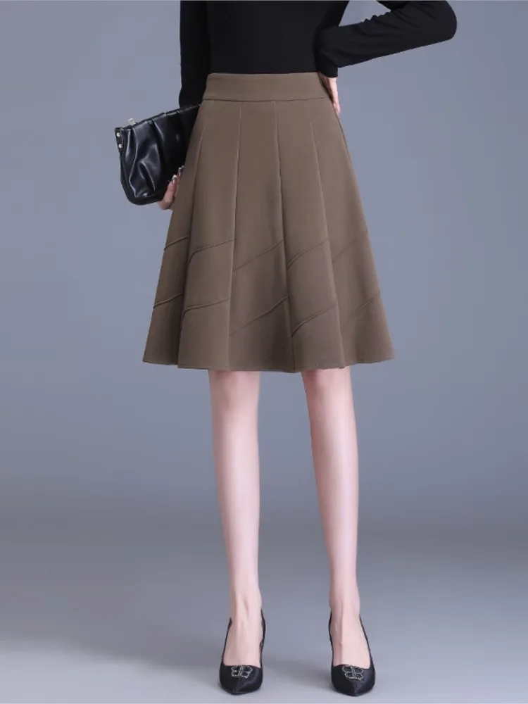 Юбка-трапеция Женская до колен, однотонная модная короткая юбка с поясом на резинке, одежда для работы, весна-осень
