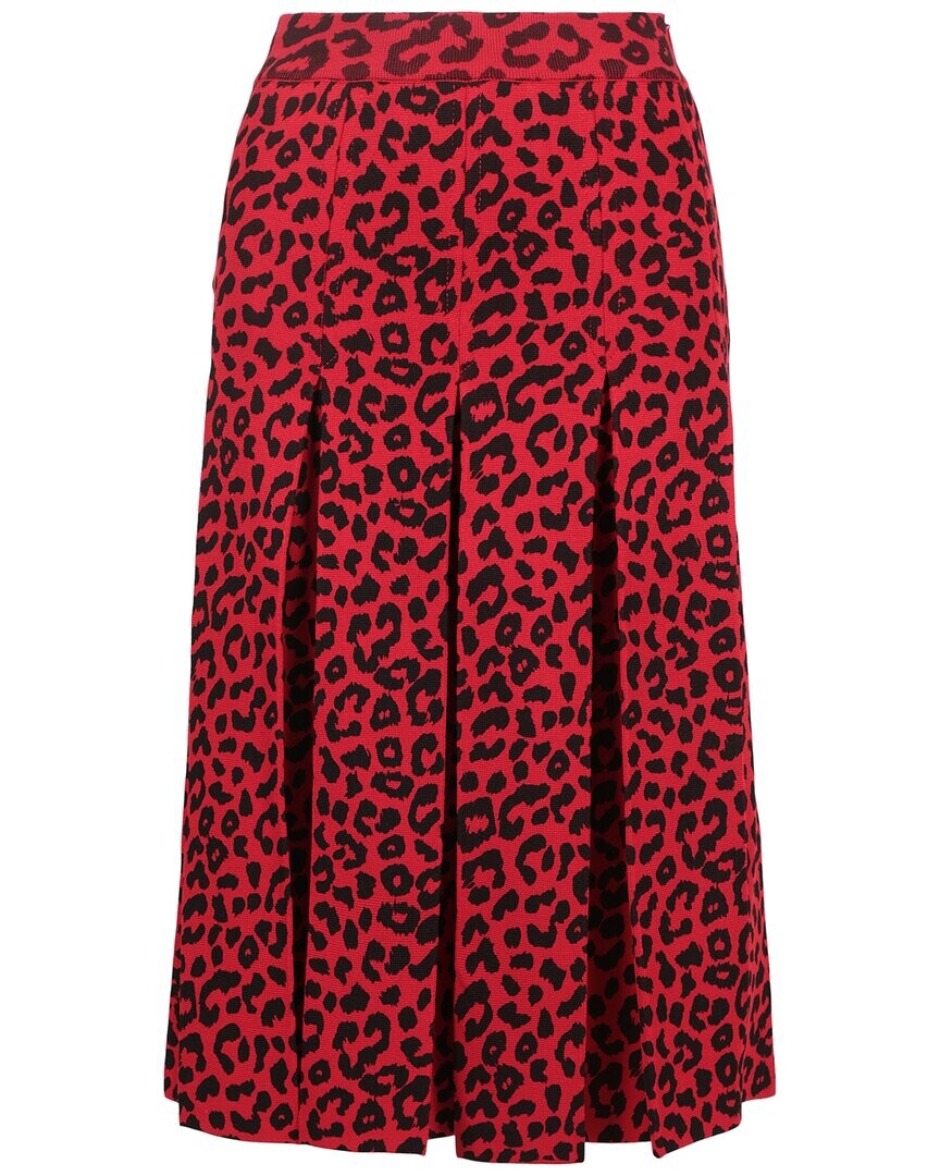 Юбка Gucci из смесового шелка с леопардовым принтом, красный