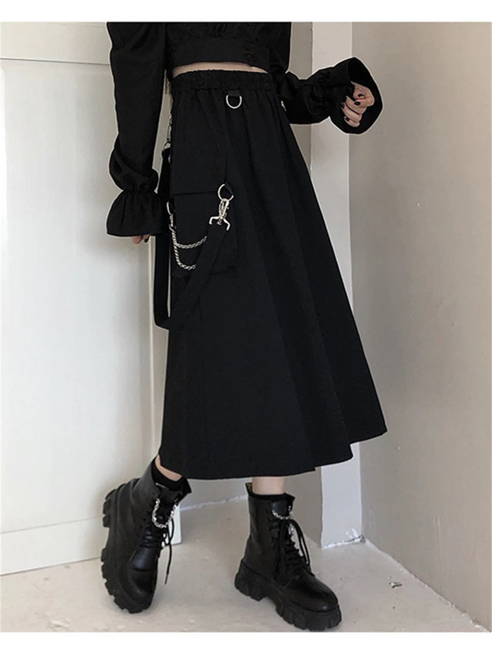 Юбка Techwear Женская длинная в готическом стиле, модная миди-юбка в стиле панк, с высокой талией и цепочкой, модная уличная одежда в стиле Харад...