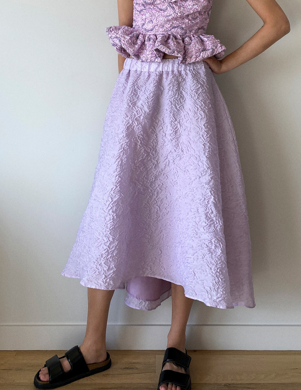 Юбка миди с эластичным поясом, подкладкой и асимметричным низом