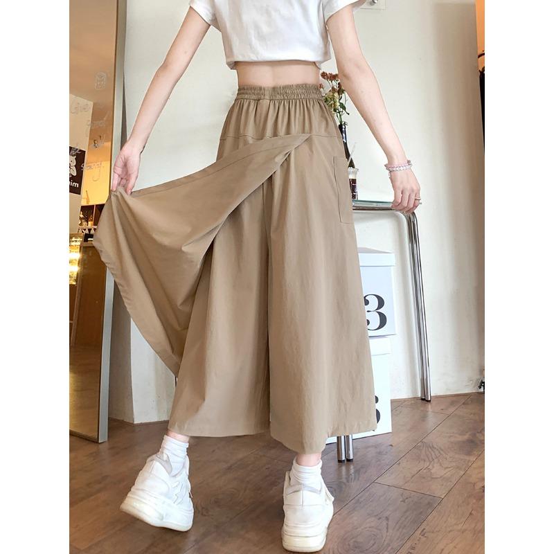 Юбки и брюки с разрезом для женщин на лето, новая узкая юбка с высокой талией, повседневные брюки большого размера из ледяного шелка M