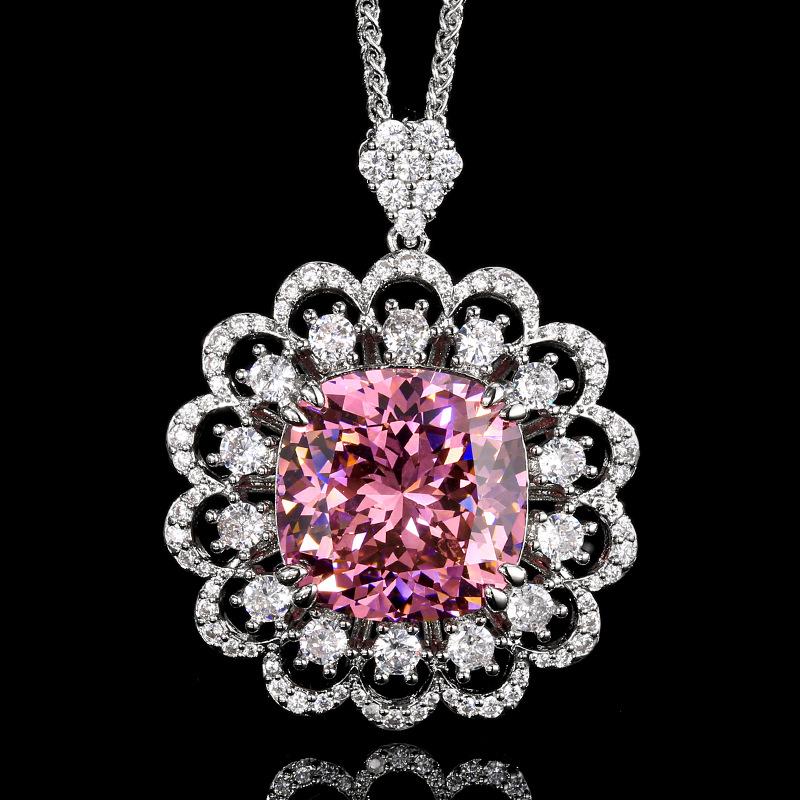 Ювелирные изделия Медное основание Позолоченное Имитация Красного Корунда Ретро Кружевной Кулон Ожерелье Камень 16 * 16