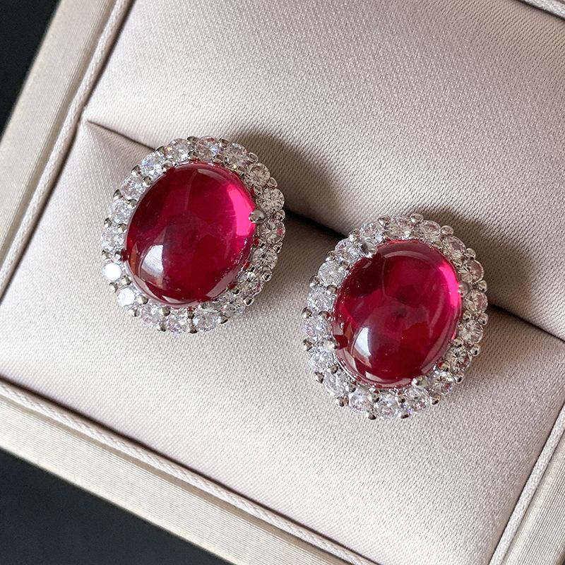 Ювелирные изделия Медное основание с золотым покрытием Ретро в форме денье Красный корунд Гладкая поверхность Полная бриллиантовая инкрустация Набор Главный камень