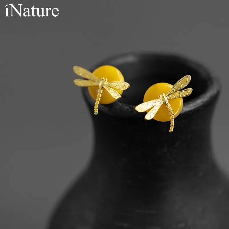 Ювелирные изделия из стерлингового серебра 925 пробы с натуральной янтарной стрекозой для женщин и девушек