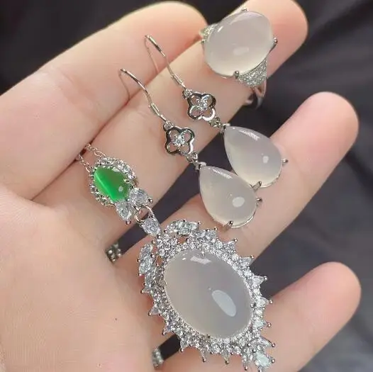 Ювелирные изделия, серебро 925 пробы, натуральная инкрустированная белая Подвеска из халцедона, алмаза, агата, нефрита