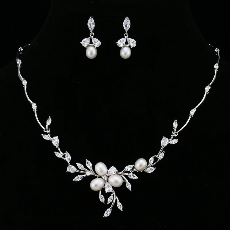 Ювелирный Комплект из колье и серёг, с жемчугом