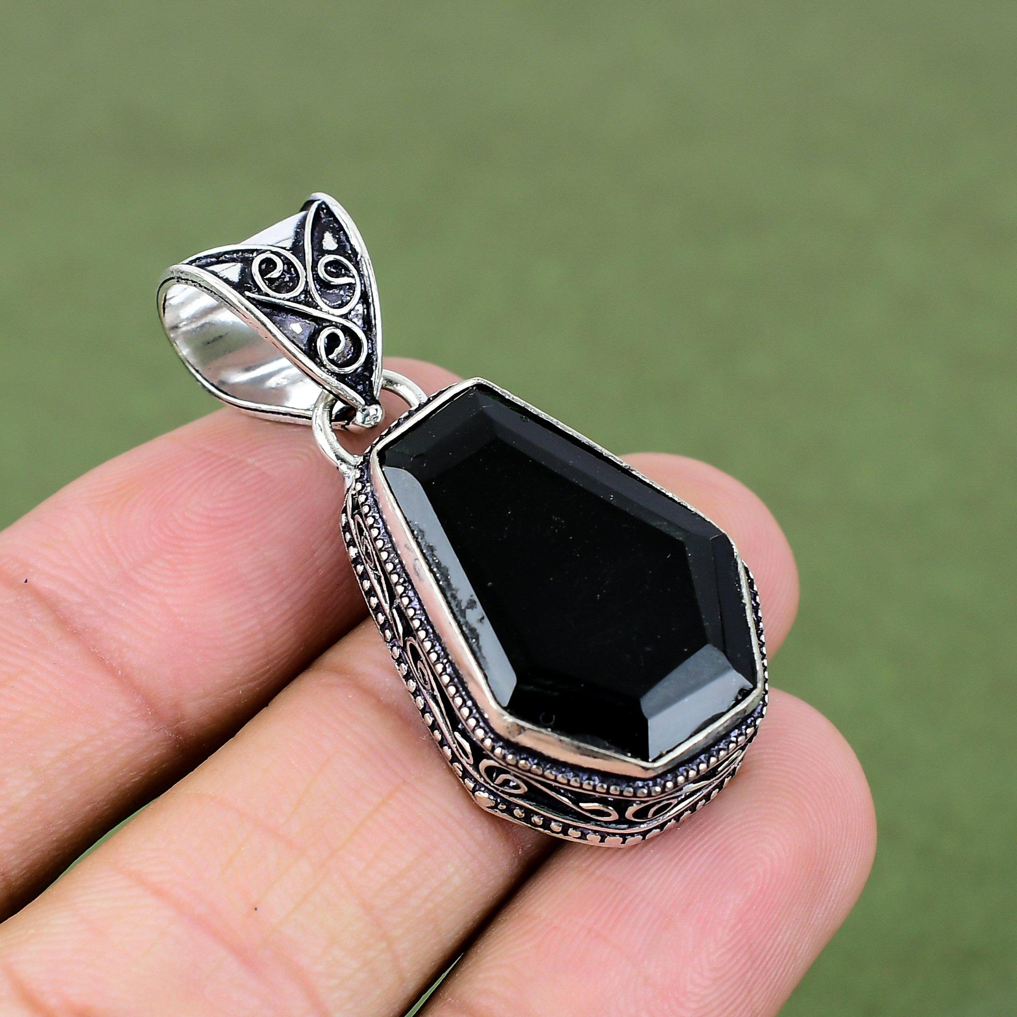 Ювелирный кулон ручной работы из стерлингового серебра 925 пробы с черной шпинелью 1,77 дюйма