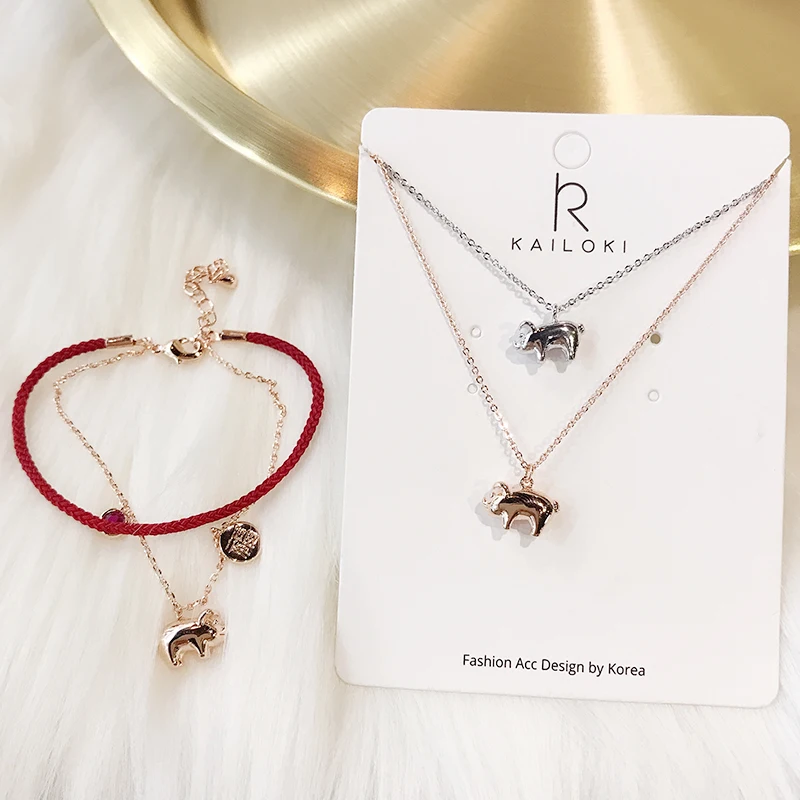 Южнокорейский Dongdaemun браслет с бусинами на удачу двухслойный коричневый Кэролайн посылает благословение 2019 в этом году красная веревка фу