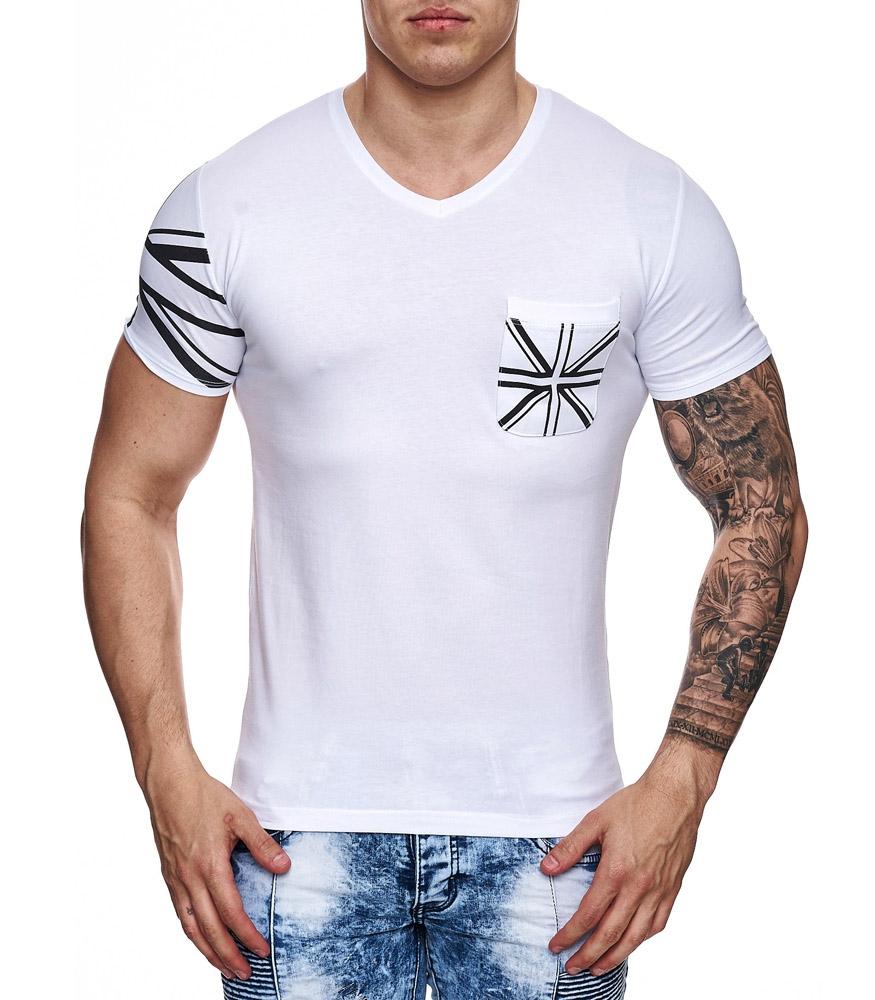 Модная футболка в режиме Union jack. Белая модная мужская футболка, черный принт Union Jack. Городской и модный трикотаж с принтом в виде флага Великобритании на нагрудном кармане. Напоминание об этом принте на рукаве, создающем городской и аккуратный образ. Соответствующий крой, материал обладает небольшой эластичностью. Эта футболка идеально впишется в форму вашего тела. В вечернее время эта белая футболка идеально подойдет к вашему образу и предложит вам непринужденный стиль. Состав: 95% хлопок, 5% эластан.