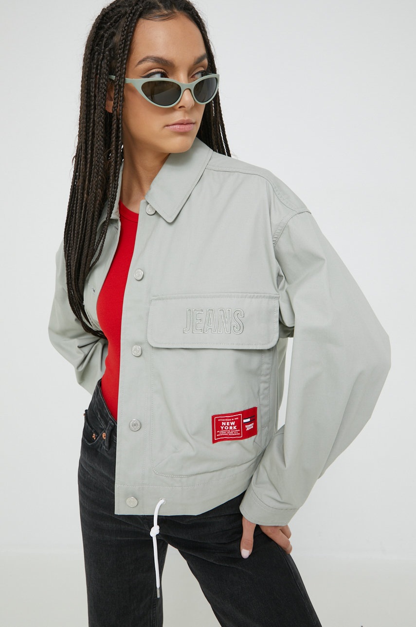 Яке от колекция Tommy Jeans. Моделът е без изолация, направен от лек материал.- Органичният памук се отглежда без използването на опасни за здравето химикали, химически пестициди или изкуствени торове.- Кройка: уголемена.- Паднало рамо.- Ръкави с копчета на маншетите.- Джоб със закопчаване.- Закопчаване с копчета.- С връзки в долната част.- Дължина на ръкава (измерен от яката): 73 cm.- Дължина: 58 cm.- Ширина под мишниците: 56 cm.- Мерките се отнасят за размер: S.