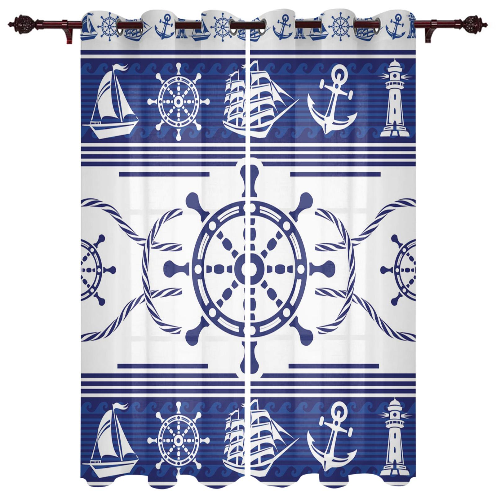 Якорь Морская звезда Полоски Оконные Шторы Спальня Кухня Шторы Панель Домашний Декор Шторы для Гостиной 135W x 60H(cm)