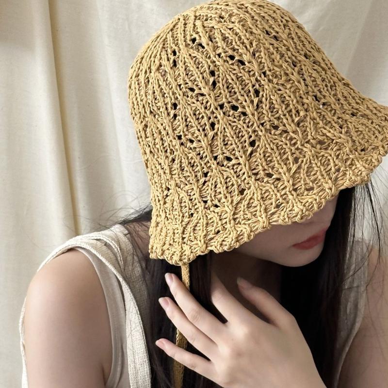 Японская ажурная вязаная шляпа на шнуровке для женщин на весну и лето, шляпа для защиты от солнца и солнечных лучей, дышащая, подчеркивающая лицо, маленькая шляпа-ведро one size жёлтый