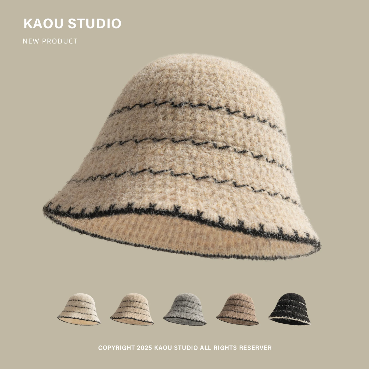 Японская вязаная панама, женская милая шапка для лица, маленькая осенне-зимняя теплая ветрозащитная шерстяная шапка, литературная полосатая шапка для бассейна