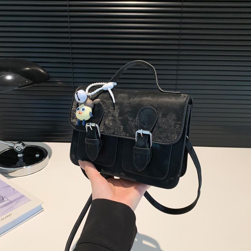 Японская маленькая сумка-ранец, ретро, маленькая квадратная сумка, женская, 2024, новая модная маленькая квадратная сумка, повседневная сумка-мессенджер в студенческом стиле Without pendant чёрный