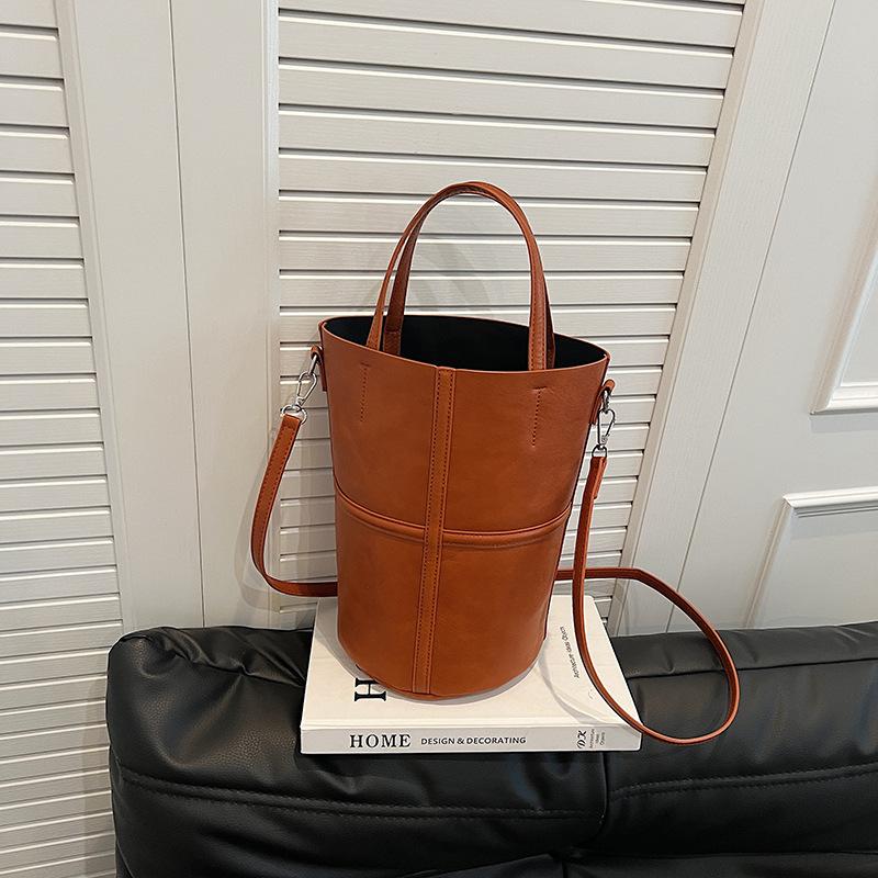 Японская и южнокорейская сумка-ведро, женская сумка через плечо, модная и простая, мягкая кожа, сумка-мессенджер большой вместимости для поездок на работу 18*17*28 тыква