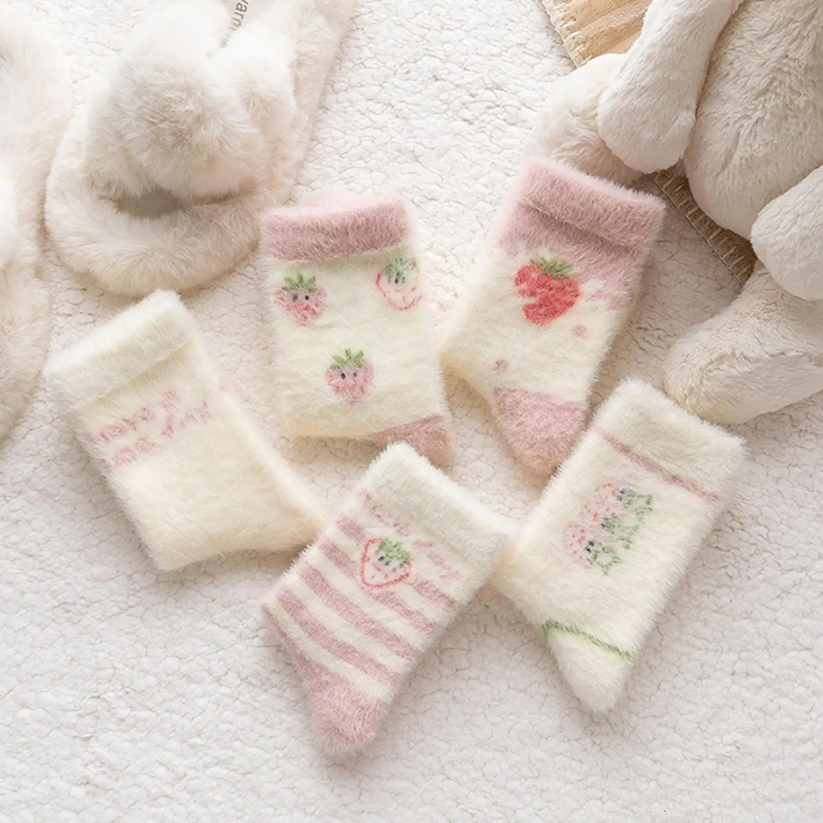 Японские Женские носки из меха норки, милые и милые розовые носки, толстые носки для сна, зимние носки средней длины, носки для пола C5q1