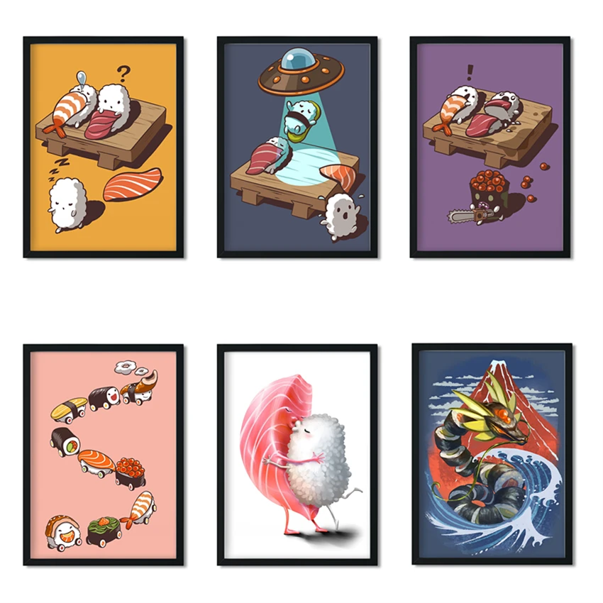 Японские самые популярные ингредиенты суши смешной стиль ресторан кухня домашний декор живопись HD живые плакаты Холст Картина H4