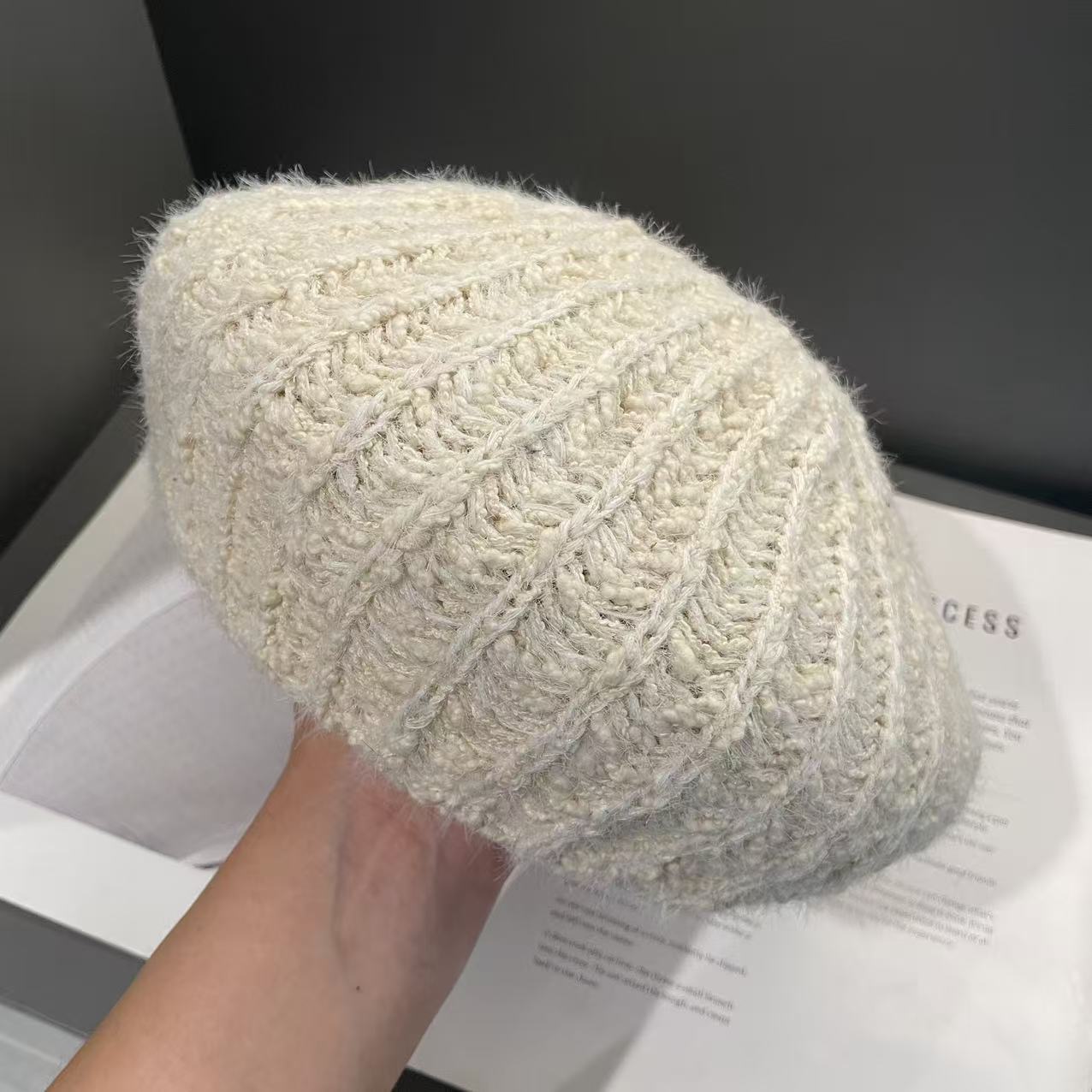 Японский Маленький Аромат Стиль Однотонный Простой Берет Женский Осенне-Зимний Теплый Вязаный Головной Убор Универсальный Для Лица Шляпа Маленького Художника M(56-58cm)