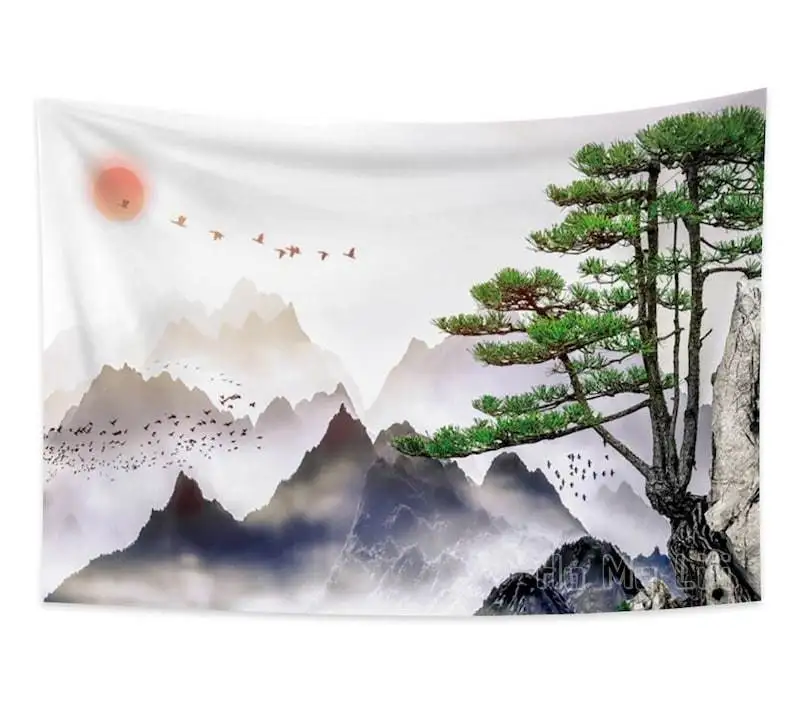 Японский гобелен, пейзаж, чернильная живопись, искусство, Настенный декор