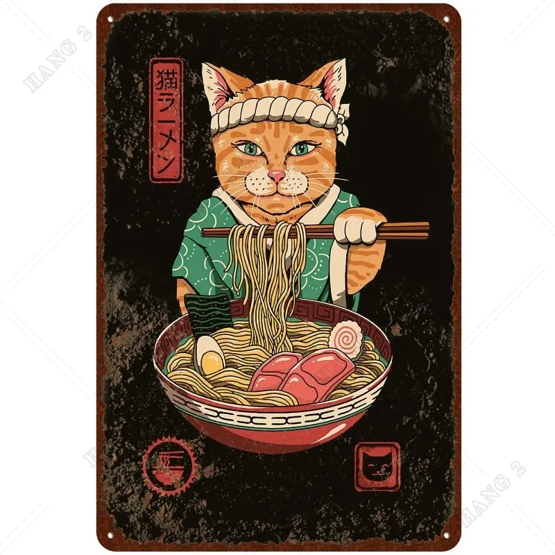 Японский кошка и фаст-фуд винтажный жестяной знак-японский рамен металлический знак декоративный домашний Ретро Декор стен