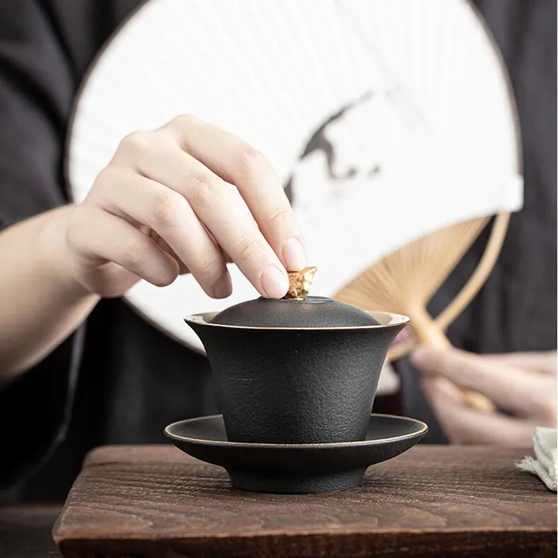 Японский стиль дзен грубая керамика покрытая чаша одна чаша Чаша чай чашка черная красная керамика Gaiwan праздничный простой чайный набор