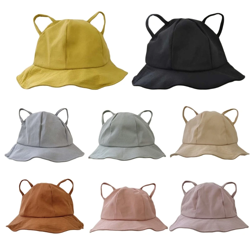 Японский стиль для женщин и девочек, летняя хлопковая шляпа-ведро с широкими полями, кавайная милая полые кошачьи уши, сплошной