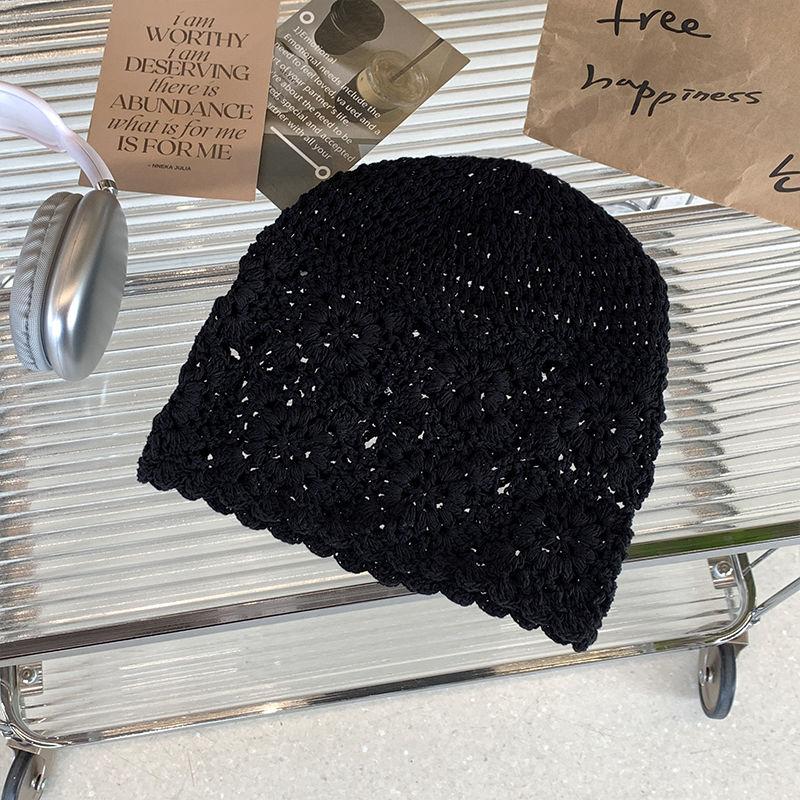 Японский стиль ручной вязки повязка на голову шапка женская весенне-осенняя тонкая ажурная шерстяная шапка ретро литературная вязаная шапка бини One Size чёрный