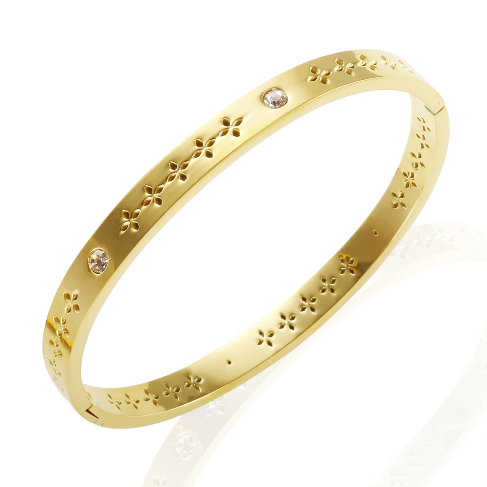 New Hollow Plum Blossom Bangles for Woman Men Stainless Steel CZ Crystal Cubic Zirconia Flowers Bracelets Couple Jewelry Gift