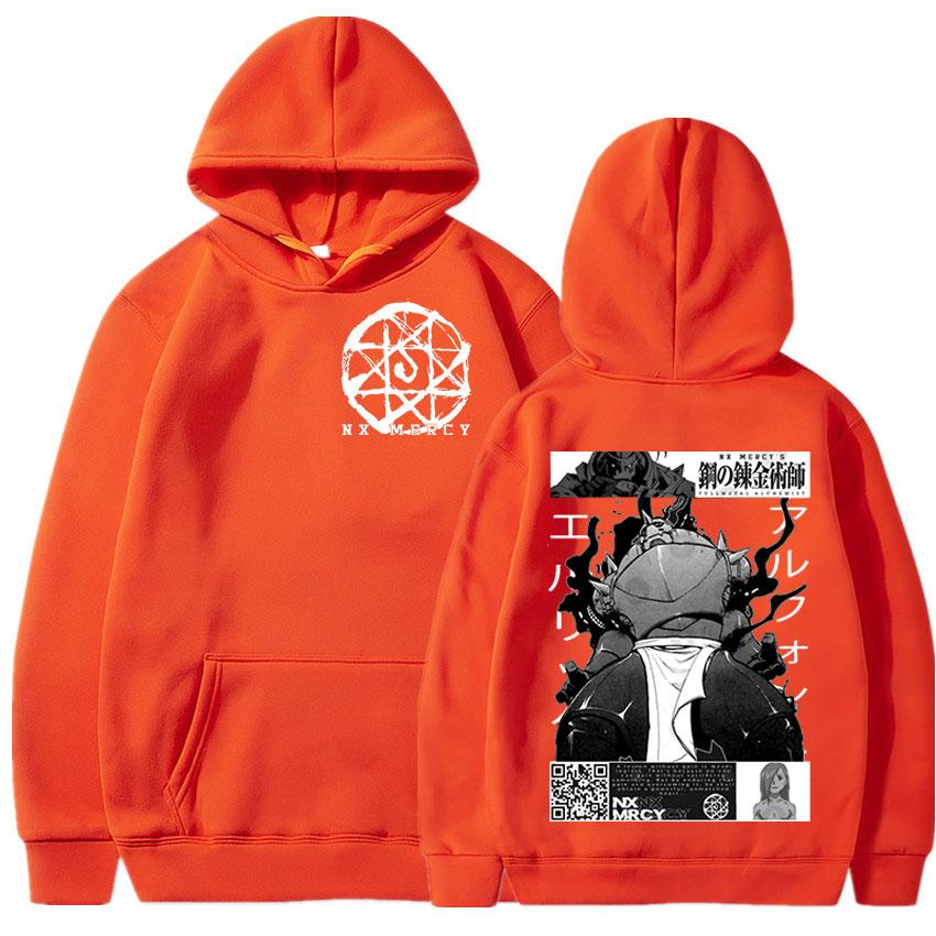 Японское аниме «Стальной алхимик», мужские толстовки в стиле Харадзюку, уличная толстовка, унисекс, модные, с длинным рукавом, с капюшоном «Альфонс Элрик, манга», топы 4XL оранжевый
