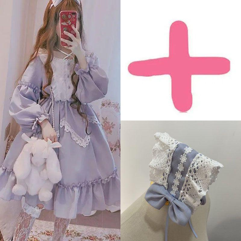 Японское милое кавайное милое женское платье в стиле Лолиты, свободное черное платье в стиле Кореи, кружевное платье с длинными рукавами в стиле Харадзюку XS